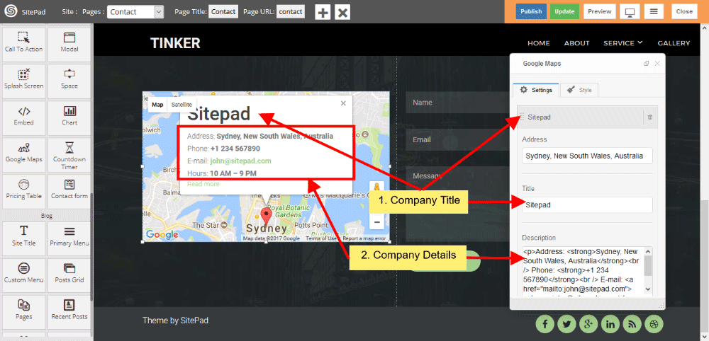 1) When you click Add new Marker, you can able to customize Company Details such as Title, Address and other information.